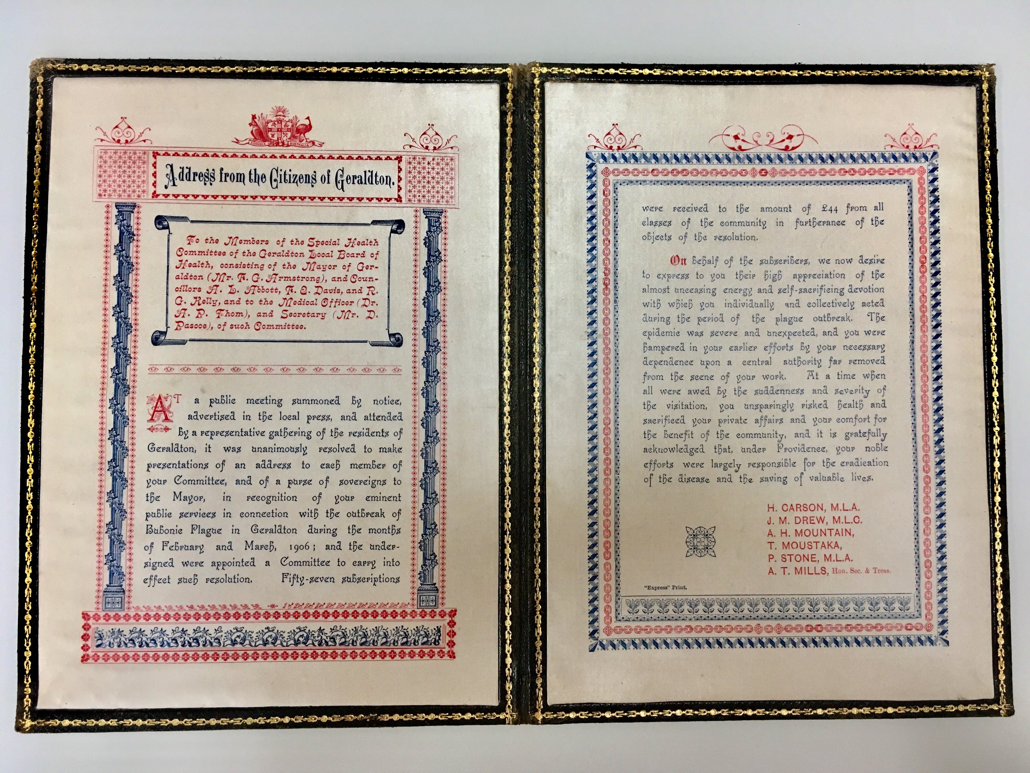 As the months went by relief gave way to indignation. On 23 June 1906 an illuminated address was presented to the Local Board of Health thanking them for all that they did during the outbreak. During the presentation, criticism was levelled at the Central Board of Health and in particular, Dr Black.