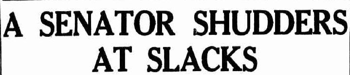 - 1933 ‘A SENATOR SHUDDERS AT SLACKS’, The Daily Telegraph (Sydney, NSW : 1931 – 1954), 22 November, p. 11. , viewed 31 May 2019, http://nla.gov.au/nla.news-article247167123