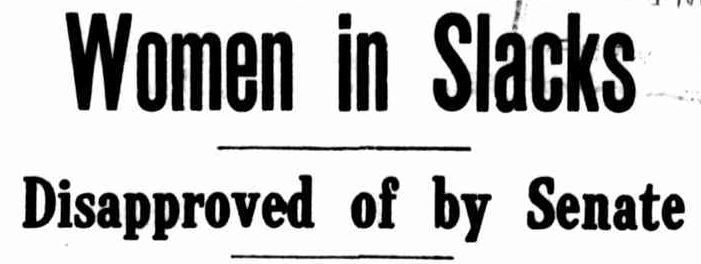 The President of the Senate personally objected to women wearing slacks but nevertheless gave the matter some thought. After five minutes, he banned them.