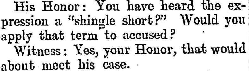 John Shorthill was next and asserted that the boots were his and that he had not lent them to Hall. The evidence continued in a similar fashion to Richard’s with John stating that he “had always regarded the lad as a ‘softy.‘” While today we might consider the word ‘softy’ to refer to someone who was soft-hearted or sentimental, it seems likely, that in 1902, John was using it to describe Hall as a foolish person.
