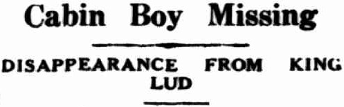 Despite inquiries, he was not found. Less than two weeks later the King Lud finished loading the cargo of wheat at Fremantle and at 11:10 pm on 16 March, it steamed away from Western Australia minus its cabin boy.