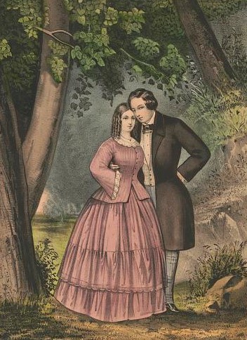 - The lovers walk; Currier & Ives; 1856; Courtesy of the Library of Congress; https://www.loc.gov/pictures/item/2002709974/.