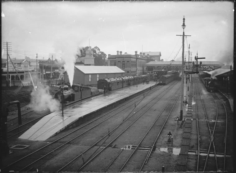 - State Library of Western Australia; Into the Perth Railway Station from the east [picture]; 1905; Passey collection of photographs ; 5323B/1024; Call Number: 008105PD.