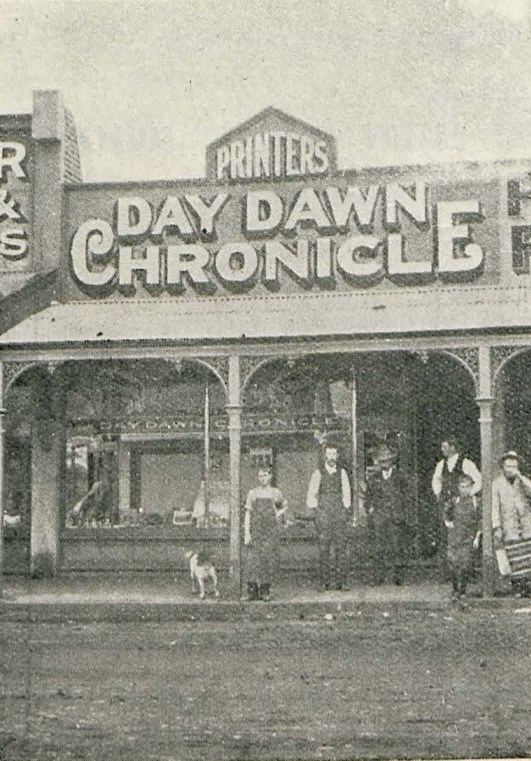 - Image of the office of the Day Dawn Chronicle sourced from The Golden West courtesy of the State Library of Western Australia (December 1906; Page 21).