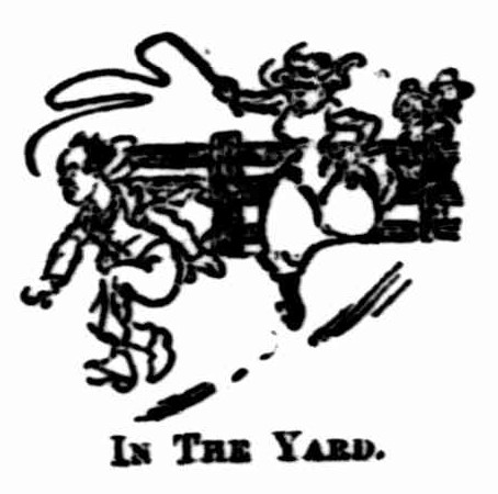 The pace soon slowed, and William made his escape through a gate, shutting it behind him. Rose cracked the whip, hitting the fence. The chase did not calm her fury. Encouraged by the crowd, back to the front of the building she went, and in she walked.
